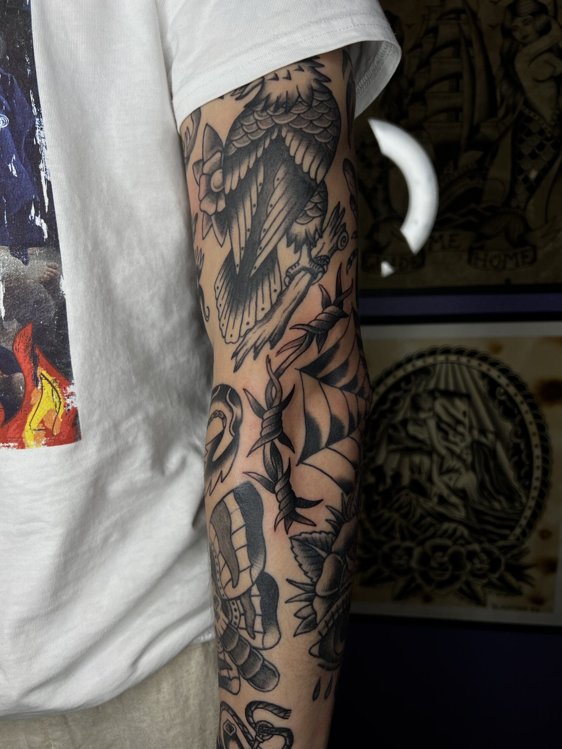 Andy takes pride in carrying on a tradition and celebrating the timeless art of traditional tattooing, as well as those who came before him. He draws inspiration from legendary artists like Bert Grimm, Lyle Tuttle, and Paul Dobleman. Attention to detail is central to who Andy is as a person.
